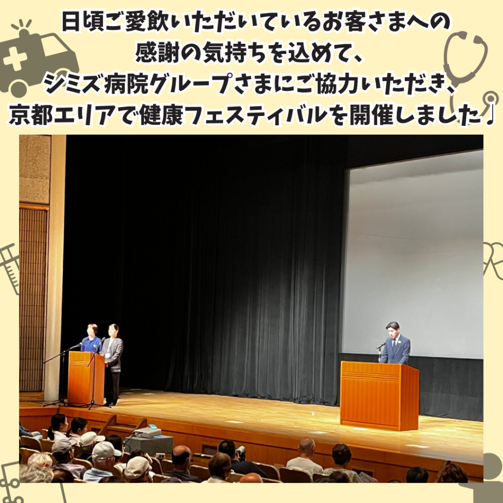 日頃ご愛飲いただいているお客さまへの感謝の気持ちを込めて、シミズ病院グループさまにご協力いただき京都エリアで「健康フェスティバル」えお開催いたしました♬