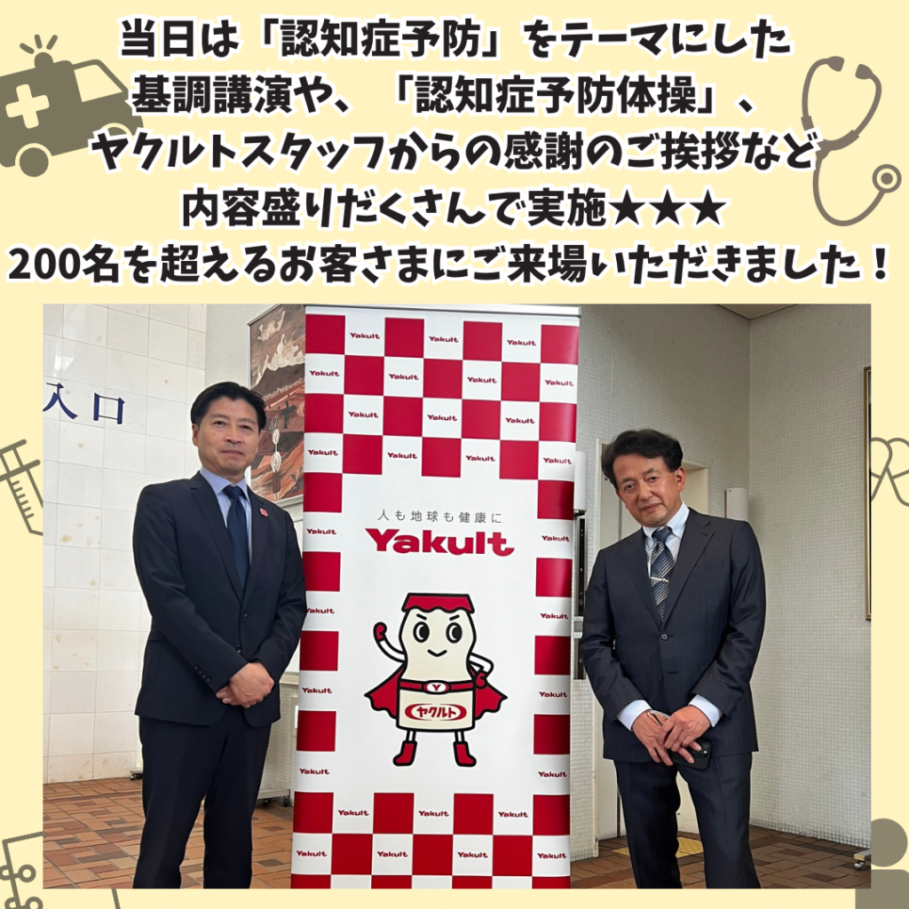 当日は「認知症予防」をテーマにした基調講演や、「認知症予防体操」、ヤクルトスタッフからの感謝のご挨拶など内容盛りだくさんで実施🙆🏻‍♀️✨
