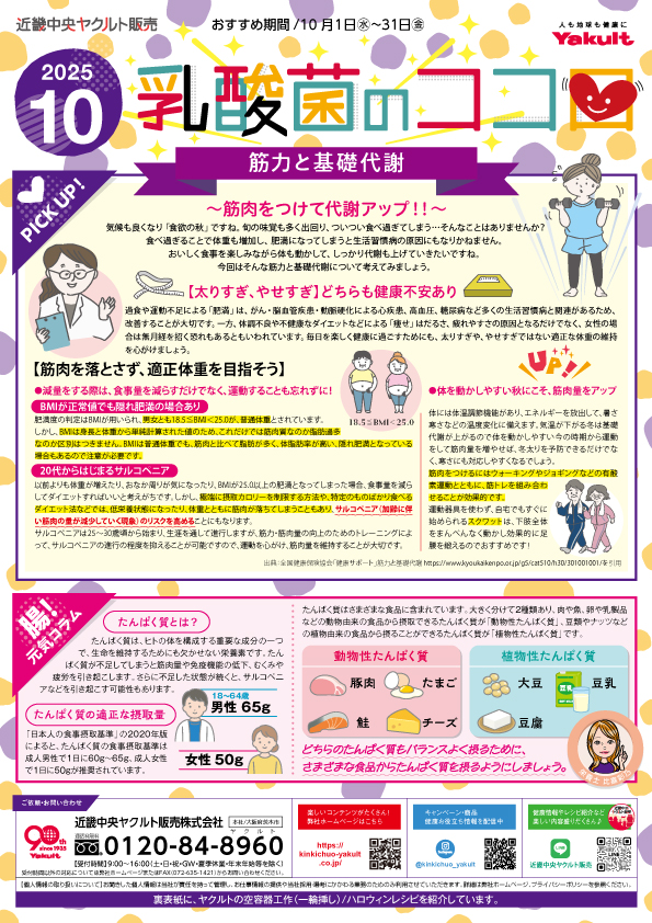 - 特集/筋力と基礎代謝 腸!元気コラム/タンパク質とは? 今月のレシピ/おばけ柄?!ハンバーグ